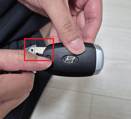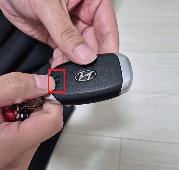 1️⃣ 스마트키 뒷면 네모난 버튼을 눌러 키를 빼낸다.