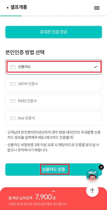 요금제 납부방법까면 셀프개통 절차가 완료됩니다. 이상 없이 개통되었으면 본인인증에 사용했던 원래 휴대폰으로 개통안내 문자가 발송됩니다.